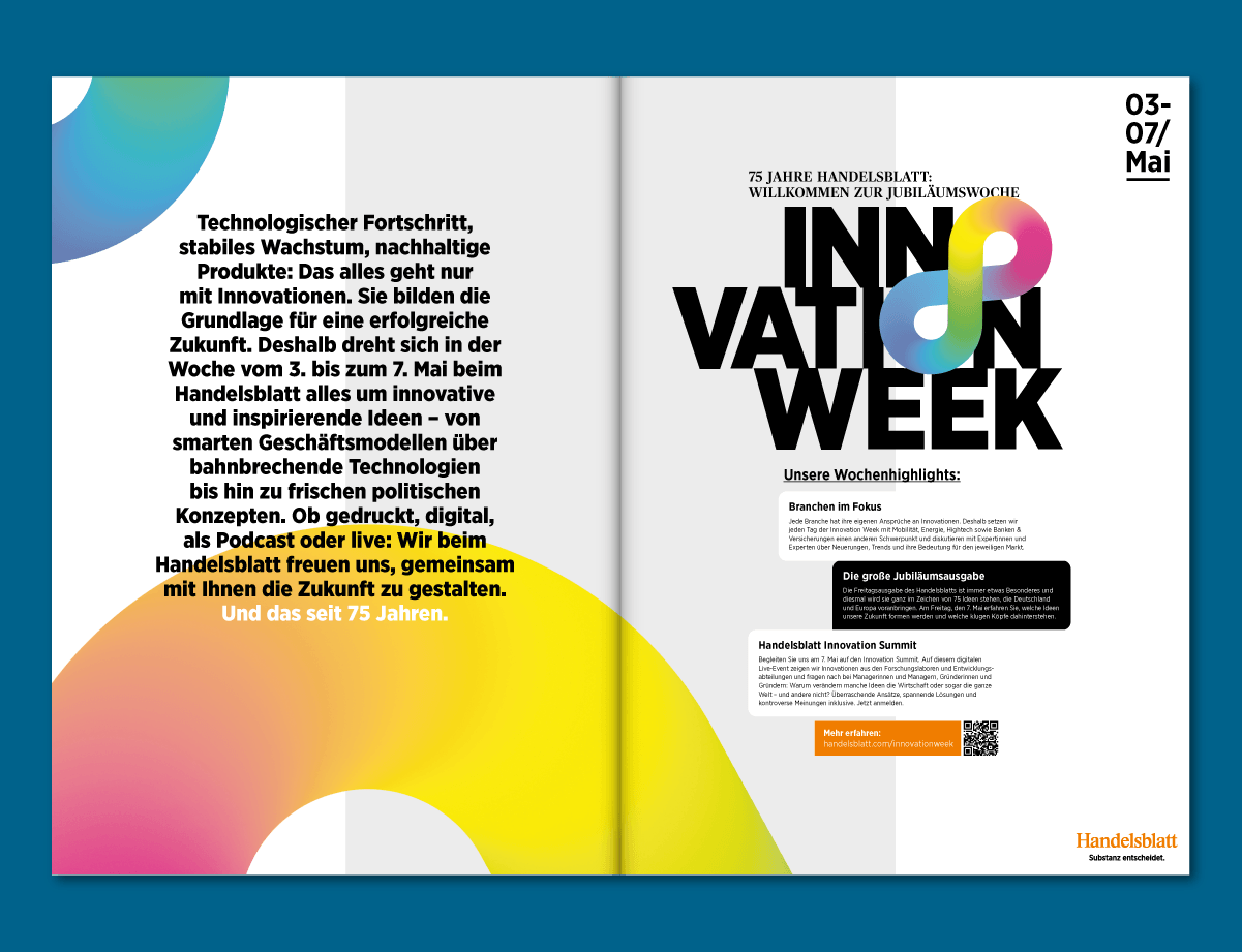 When the German newspaper Handelsblatt celebrated its 75th anniversary and 75 year of constant self-reinvention, innovation became the obvious motto. A new format was created, to happen not only in its anniversary year 2021 but every year after that.