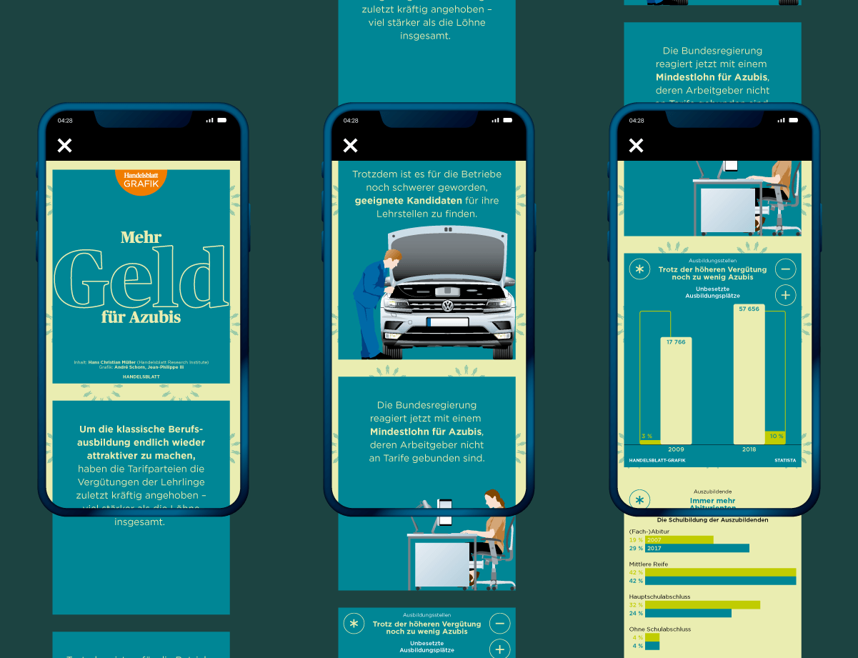 Handelsblatt — Student Campaign on Instagram Stories Year: 2021 Context: Digital campaign for Handelsblatt targeting students. Market research had shown untapped potential in this audience, particularly through Instagram Stories rather than traditional digital advertising formats. My role: Creative Director. I led the creative direction of the campaign, defining the visual and narrative framework and guiding execution across formats. Project type: Digital campaign · Social media advertising · Creative direction